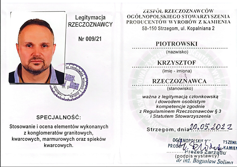 Rzeczoznawca – Zespół Rzeczoznawców Ogólnopolskiego Stowarzyszenia Producentów z Kamienia